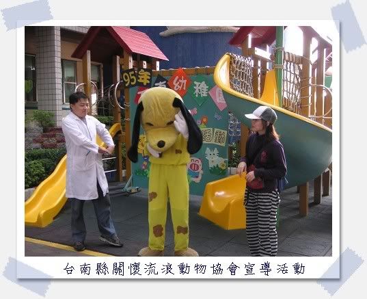 Eileen:哦哦!這是星期三早上,台南縣關懷流浪動物協會來學校宣導活動!